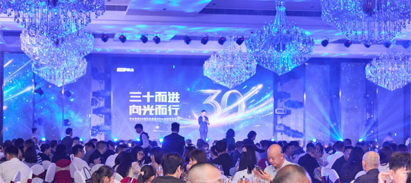 入夜,庆典晚宴正式开幕。灯光渐暗,15秒的寂静之后,沙沙笔声响起——三分钟品牌主片《三十而进》在全场泪光中落幕,随即无缝切入星舰引场视频。施红光先生步上台,正式发布联众全新品牌体系: