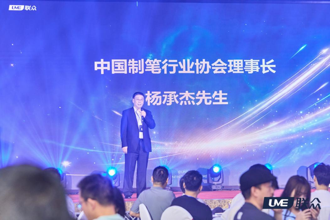 中国制笔协会理事长杨承杰先生莅临致辞,高度肯定联众三十年来对行业标准与品质文化的持续贡献;京东平台合作代表亦专程登台,对联众三十年的品质积淀与2026年的全面焕新给予高度认可,并表达了深化双方合作、共同拓展全渠道市场的坚定信心。